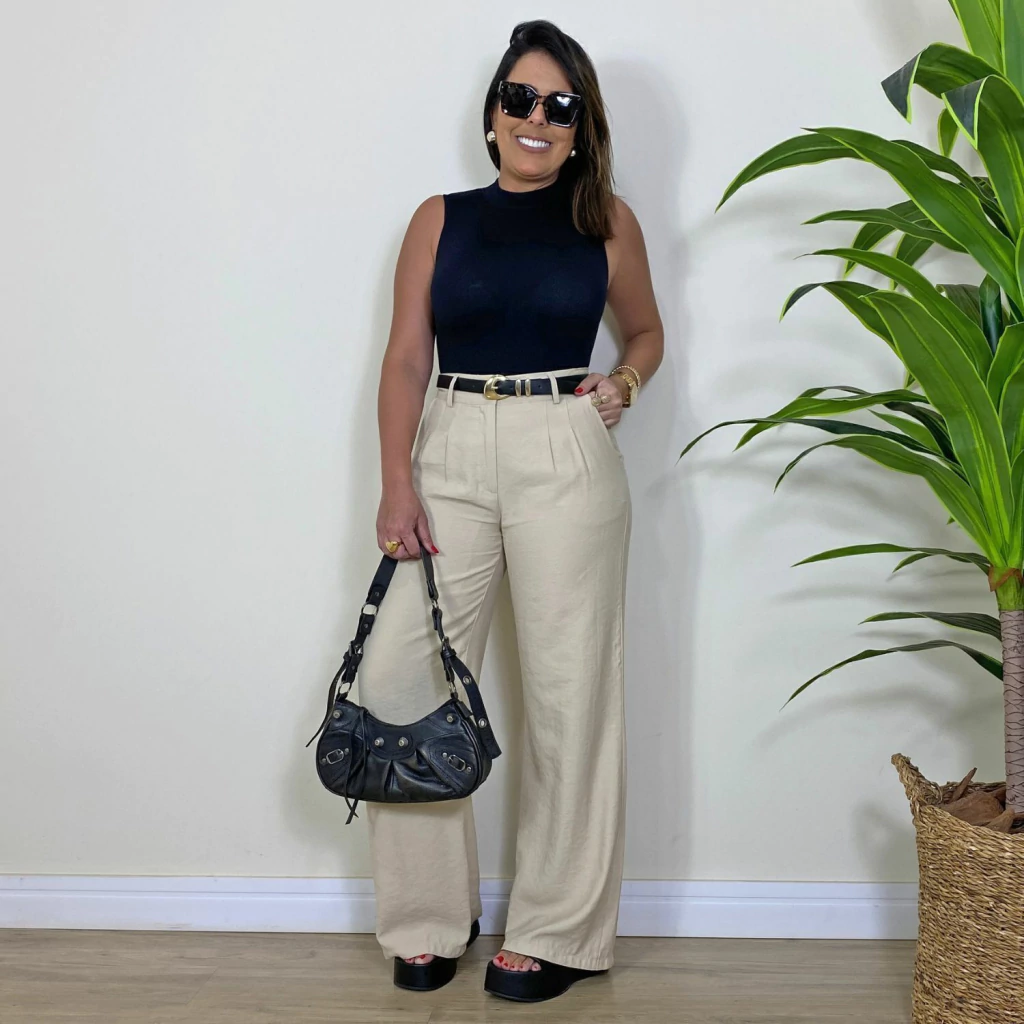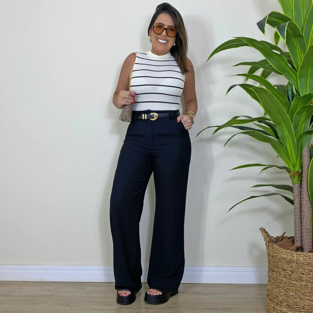 A modelo Camila veste 36/38 e possui as seguintes medidas: - Altura: 166 cm - Busto: 92 cm - Cintura: 72 cm - Quadril: 98 cm