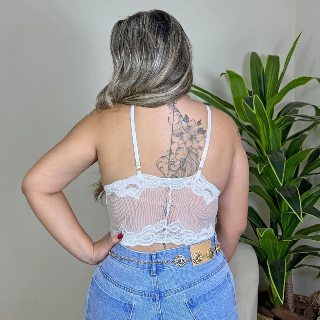 Seu bojo integrado oferece a sustentação necessária e um leve volume, valorizando o busto de forma natural e confortável. Use-o para compor looks casuais com calças de cintura alta, sob uma camisa transparente para um toque de mistério, ou como uma lingerie sofisticada para momentos especiais.